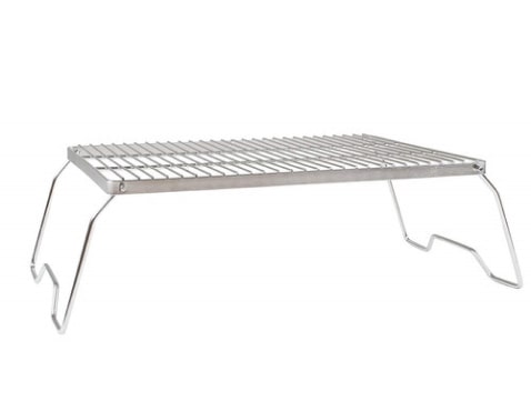 Instead of bringing a full BBQ camping just dropped some charcoal in the fire pit and used this grill to cook. Folds pretty flat and easy to pack away. It worked well for our needs and saved us from packing the bulky BBQ. Size is good for a small family - we had 3 chicken breasts on it. I like that it is stainless steel since I wanted to cook directly on the grill.