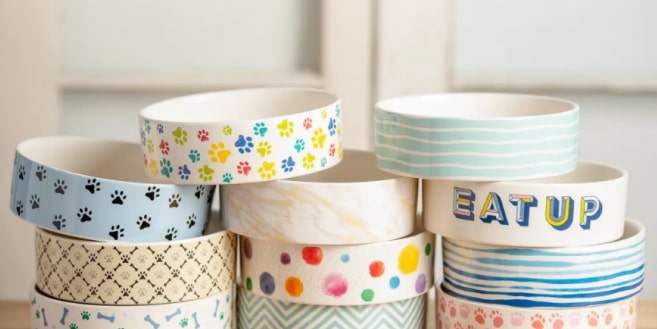 We were sick of our dog picking up his plastic food bowl and carrying it around the house to let us know it was suppertime. We figured this bowl would be heavy enough to prevent that. While he can't pick it up and carry it, he has learned how to flip it over several times onto the wood floor to get our attention I love the styling and that I can throw it in the dishwasher.