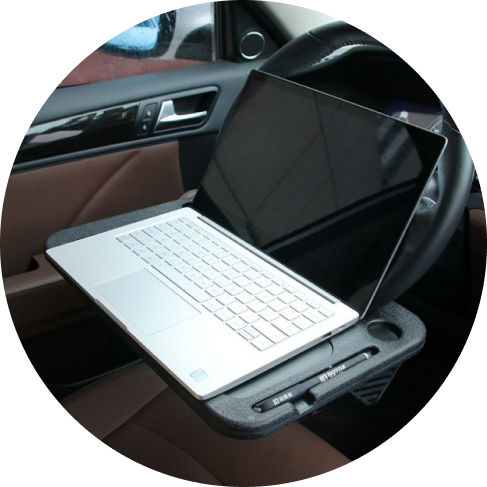 I am a manager that finds himself in the field quite a bit. I ordered this on a whim, and have since ordered a few for fellow managers, as gifts. The desk has fit almost every vehicle I have tried it in, and is just the right size for an iPad Pro in a Belkin Keyboard case. I have managed a laptop a few times as well. Oh, and you can eat lunch off of it as well, if you'd like. Just remove before driving. You have been warned.