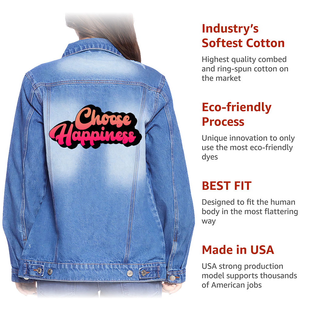 Choose Happiness Women’s Casual Denim Jacket – Positive Ladies Denim Jacket – Best Print Denim Jacket