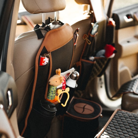 This is what you need when you transport kids in the back! Attaches to the top of the headrest, around the back of the seat and below. High-quality organizer. Lots of pockets and two carabiner hooks to which you can attach a toy or a child's backpack. Also protects against dirty shoes