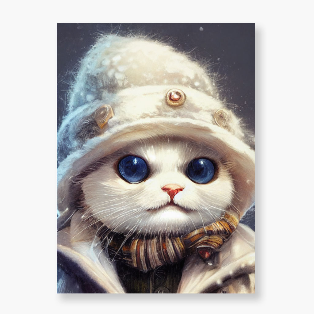 Fantasy Art Wall Picture – Cute Stretched Canvas – White Cat Wall Art