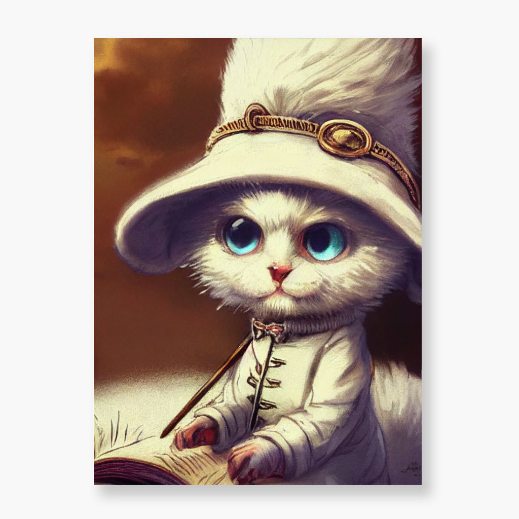 White Cat Wall Picture – Artwork Stretched Canvas – Wizard Wall Art