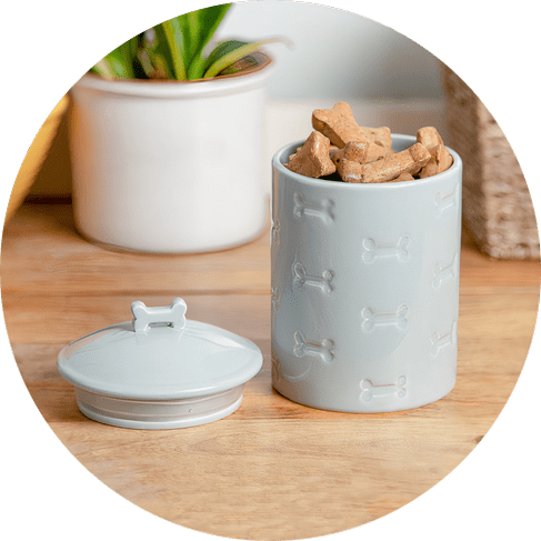 I love these containers for dog treats. They seal tightly and look good on my kitchen counter too. Love the little bone prints on them!