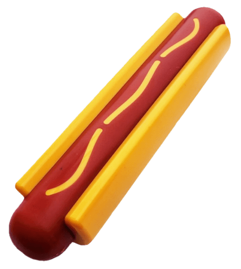 My corgi Sunny is in love with this hot dog! She won’t stop chewing on it. Very good toy!