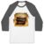 features raglan 3/4 sleeves and a modern fit that is perfect for a day
