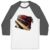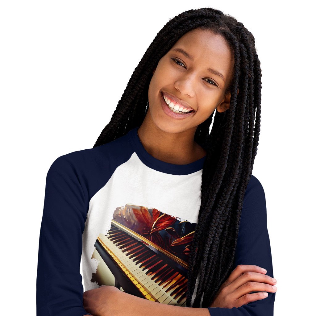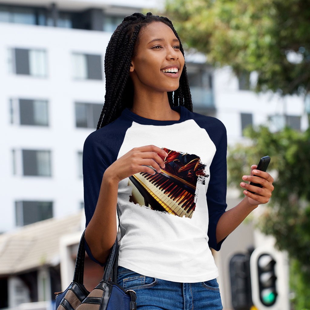 features raglan 3/4 sleeves and a modern fit that is perfect for a day