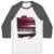 features raglan 3/4 sleeves and a modern fit that is perfect for a day