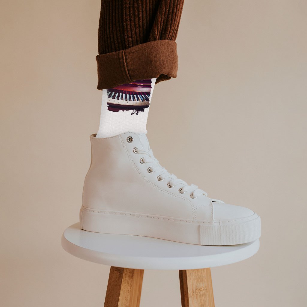 Cushioned foot bottom makes Piano Print Socks a sure bet for everyday wear, from work, play, gym, sports, and beyond. These socks are designed to be all-season. This product is made breathable for when it’s warm but thick enough for when it’s cold during the winter.