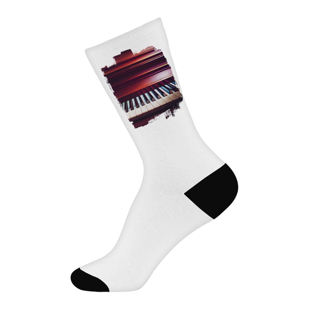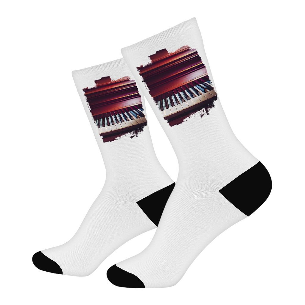 Piano Print Socks – Music Novelty Socks – Vintage Crew Socks