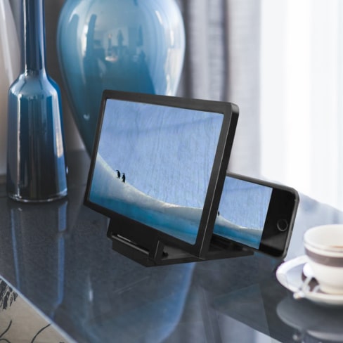 I like watching shows on my phone, especially when I'm at work. This screen magnifier makes the image in my phone screen bigger. It's easy to set up and put away. It's lighter than carrying my table. The screen is bigger than my tablet screen.