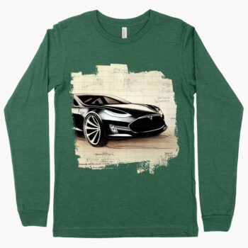 Printed Long Sleeve T-Shirt – Electric Car T-Shirt – Drawing Long Sleeve Tee Shirt