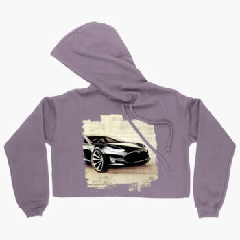 Printed Women’s Cropped Fleece Hoodie – Electric Car Cropped Hoodie for Women – Drawing Hooded Sweatshirt