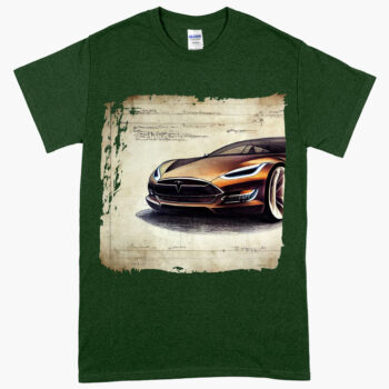 Printed Heavy Cotton T-Shirt – Electric Car Tee Shirt – Drawing T-Shirt