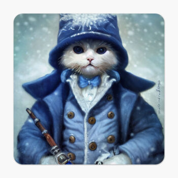 Cartoon Cat Square Coasters – White Cat Coaster – Wizard Coasters for Drinks