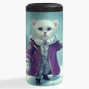Cartoon Cat Insulated Slim Can Cooler – White Cat Can Cooler – Wizard Insulated Slim Can Cooler