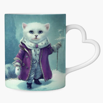 Cat Face Mug with Heart Handle – Magic Mug – Printed Ceramic Mug