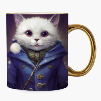 Cute Cat Mug – Wizard Gold Rim and Handle Mug – Printed Mug