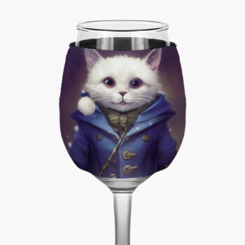 Cute White Cat Wine Glass Sleeve – Wizard Sleeves for Wine Glass – Graphic Wine Glass Sleeve