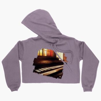 Piano Themed Women’s Cropped Fleece Hoodie – Retro Cropped Hoodie for Women – Graphic Hooded Sweatshirt