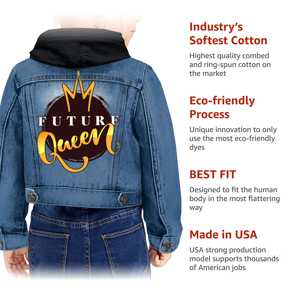 Queen Toddler Hooded Denim Jacket – Crown Jean Jacket – Printed Denim Jacket for Kids
