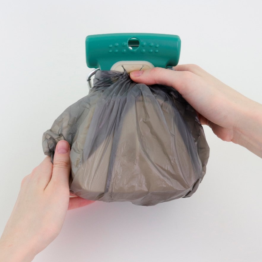 This thing seems silly to have, but it is a big help. No more warm squishy feeling when picking up after my dog. I love that it works with standard poop bags since I have so many of them. It’s a huge plus that this thing stays clean too. Simply put this device into a poop bag, open it, push the bag into the “jaw” and secure it in the silicone teeth. Once you’re done picking up, you can simply leave the jaw closed, pull the back back around the device, and tie it then open the jaw over the trash and boom, mess averted.