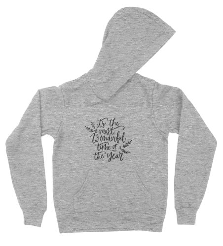 The Most Wonderful Time Kids’ Hoodie It’s the most wonderful time of the year! If you’re frantically gift-shopping or recipe-hunting for Christmas, you’re doing the holiday right and in the throes of the jolly spirit and tradition. At Santa’s Luck, nothing exemplifies tradition more than a fun, cheery Christmas hoodie….