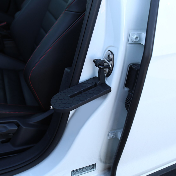 I used to carry a folding step with me to get up into the rooftop carrier on top of my Subaru SUV. This doorstep gets me higher for great access to my carrier. It is perhaps a little too high, but that is OK. I step on the door jam of the car then up onto the doorstep with the other foot. Feels very solid and secure. There is a layer of rubber where the step is next to the car so that the car's door jam does not get scratched. It can be used on the front or back door, so great access to the full carrier without having to reach too far. It folds very small so that I can store it in the driver's door storage compartment for easy access.