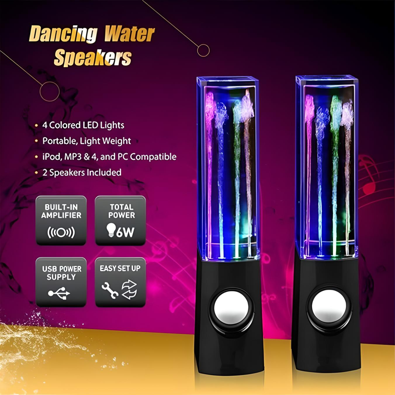 - 2 x Water Dancing LED Fountain Speakers